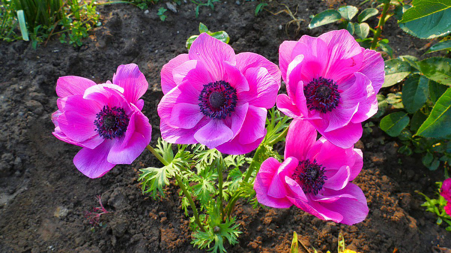 Луковицы анемоны простой Сильфиды (Sylphide) вырастают в эффектные невысокие растения с яркими сиренево-алыми цветами. Бархатистые широкие лепестки раскрываются в роскошные чаши с черной сердцевиной. Под цветками раскидывается зеленое облако резной листвы. Название многолетника в переводе с греческого означает «дочь ветров». Нежные лепестки завораживающе отзываются на легчайшее дуновение ветра.