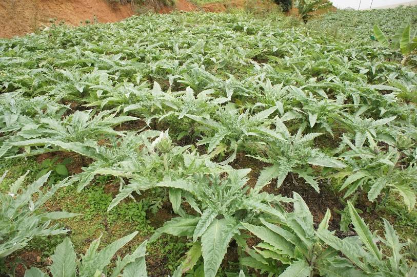 Семена артишока "Белый гигант" (Belyj gigant) для употребления в зимнее время сеют весной в прогревшуюся почву рядовым способом по 3 семени в гнездо, заделывая на глубину 3-4 см. Для получения продукции в конце лета выращивают рассадным способом. Это очень популярный сорт испанского артишока. Широко используется в качестве осеннего и зимнего овоща. Растение от обычного артишока отличается более сильным ростом и развитыми корешками. Черешковатая культура обладает высоким содержанием инулина и используется для приготовления салатов, варки и потребления в сыром виде.