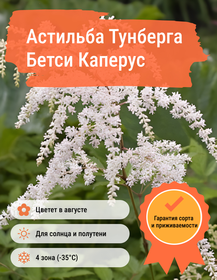 Астильба Тунберга Бетси Каперус - это изысканное растение, которое поразит вас своей красотой и изяществом. Ее стебли прочные и гибкие, способные выдерживать различные погодные условия. Растение достигает впечатляющих размеров, создавая великолепный акцент в вашем саду или огороде.