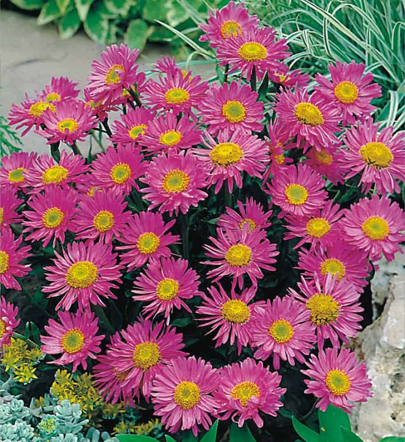 Астра альпийская розовая - это изысканное растение с нежными цветками, окрашенными в розовые оттенки. Ее стебель достигает высоты до 30 см, а диаметр цветка составляет 4 см. Листья имеют элегантную форму и придают растению особый шарм. Эта астра предпочитает солнечные и полутенистые места для посадки, идеально подходит для миксбордеров.
