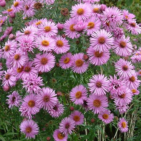 Рассада астры кустарниковой Barrs Pink используется для высаживания в рабатки, оформления мест отдыха и создания эффектных клумб. Компактные ветвистые кусты начинают цвести в конце лета. В это время появляется огромное количество небольших цветов с розовыми узкими лепестками и желтыми серединками. Нижние листья быстро засыхают, теряя декоративность, поэтому этот сорт рекомендовано сочетать с зелеными многолетниками.