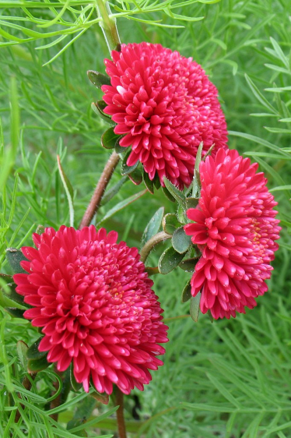 Семена астры «Помпонная темно-красная» высевают в парники во второй половине февраля. Первые всходы появляются после первой недели. Высаживают рассаду астры «Помпонная темно-красная» в конце мая на солнечные или частично затененные участки с плодородной землей. Кустики получаются средние по высоте – 50 см. Период цветения приходится на июнь-июль месяц. Соцветия крупный и махровые. Лепестки окрашены в темно-красный цвет. Сорт семян астры «Помпонная темно-красная» используют для украшения сада сборными цветниками, рабатками, а также для составления букетов.