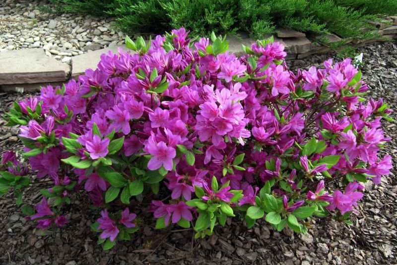 Саженцы азалии Петтикоут (Petticoat) вырастают небольшим кустиком около 50-100 см в высоту, с плотной, густой кроной. Листики небольшие, овальной формы и темно-зеленого окраса придают пышность. Зацветает в мае-июне розовыми, махровыми цветочками, которые обильно покрывают куст. Достоинства азалии Петтикоут: