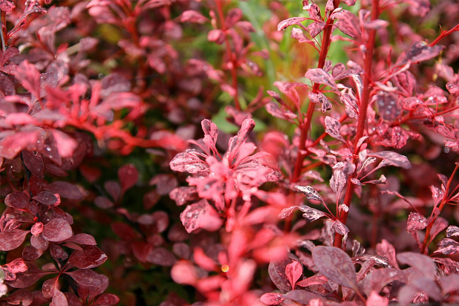 Саженцы Барбариса Тунберга Rose Glow (Роуз Глоу) поражают красивейшими пестрыми листьям, оттеняющими достаточно темный цвет остального кустарника. Осенью малиново-розовый цвет саженца сменяется на оранжевый. Крупномер Тунберга Rose Glow за год увеличивается на 15 сантиметров. Изнутри цветы крупномера - желтого цвета, после опадания на их месте появляются красные ягоды. Растение хорошо приживается в любой почве, отдавая предпочтение нейтральной кислотности, но совершенно не переносит слишком обильных поливов, а также произрастания вблизи от грунтовых вод. Этот Барбарис любит яркое солнце и хорошо его переносит.
