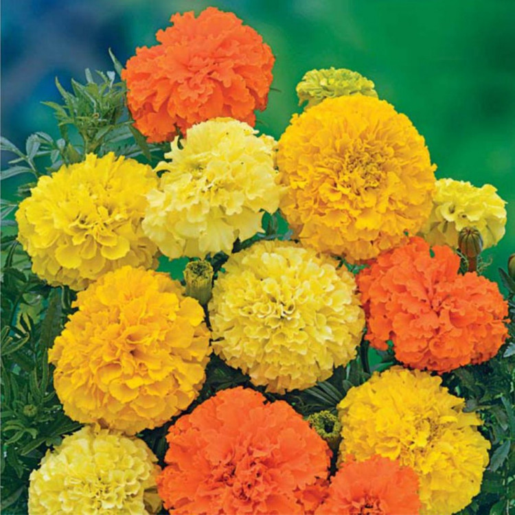 Семена бархатцев «Смесь окрасок» высевают в парник в конце апреля. За две недели они прорастут. Высаживать рассаду бархатцев «Смесь окрасок» можно уже конце мая. Между растениями придерживаются расстояния до 25 см. Подходят хорошо освещенные либо частично затененные участки с любым грунтом. Семена бархатцев «Смесь окрасок» не нуждаются в удобрениях. Растение, несмотря на высоту в 90 см, получается компактным. Цветы собираются в большие и махровые соцветия, которые окрашены в желто-оранжевые цвета. Период цветения длится с июля до середины осени. Растение часто используют для групповых и одиночных посадок.