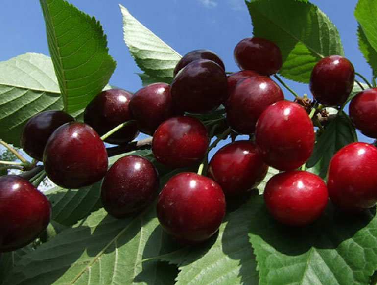 Саженцы черешни Ленинградская черная и крупномеры вырастают среднестволовым деревом высотой до 3-4 м, ветви раскидистые малолиственные. Обладает устойчивостью к клещам, тле и болезням. Скороплодность (на 3 год), урожайность в сезон высокая до 40 кг с дерева , созреваемость ягод неравномерная (с 16-20 июня и июль). Осыпаемости нет, ягоды могут висеть на дереве до сентября. Внешне походят на черно-бордовую вишню с ярким черешневым вкусом, весят 3-5 г. Требуют дополнительно деревья - опылители сорта Ипуть, Фатеж.