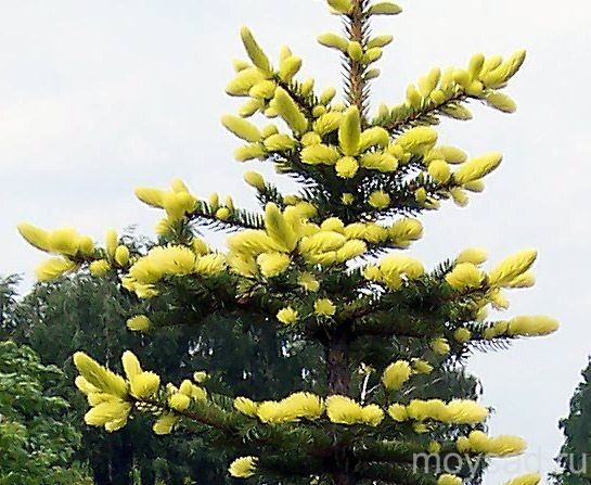 Саженцы Ели колючей Майголд (Maigold) – уникальный вид голубой ели с зеленой хвоей. Крона растения вертикальная, среднерослая, с формой конуса. Растет дерево средними темпами. в период мая-июня можно видеть золотисто-желтый цвет весеннего прироста, который со временем набирает зеленый цвет. Высота растения 5-6 метров, а диаметр 3 метра. Ель колючей Майголд предпочитает освещенное место или полутень. В тени она вытягивается и теряет насыщенный окрас. Предпочтительна почва, богатая элементами, суглинок и мульчирование приствольного круга. Любит умеренный полив, дождевание кроны. В весенне-Осеннего период нужна обработка элементами меди.