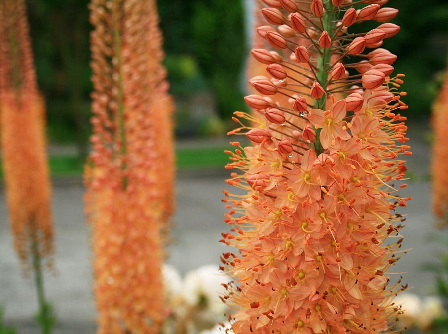 Саженцы эремуруса гибридного Пиноккио (Eremurus hybrida Pinokkio) подходят для выращивания в открытом грунте. Травянистый многолетник вырастает до 100-120 сантиметров, создавая акцент на клумбе. Прямой, вертикально направленный вверх стебель плотно усыпан маленькими цветочками желто-оранжевого цвета – соцветие цилиндрическая кисть. Особенно декоративен в июне-июле, в период буйного цветения. Растение нетребовательно в уходе, предпочитает открытые, хорошо прогреваемые солнечные места, желательно на возвышенностях. Используется для одиночных и групповых посадок, букетов.