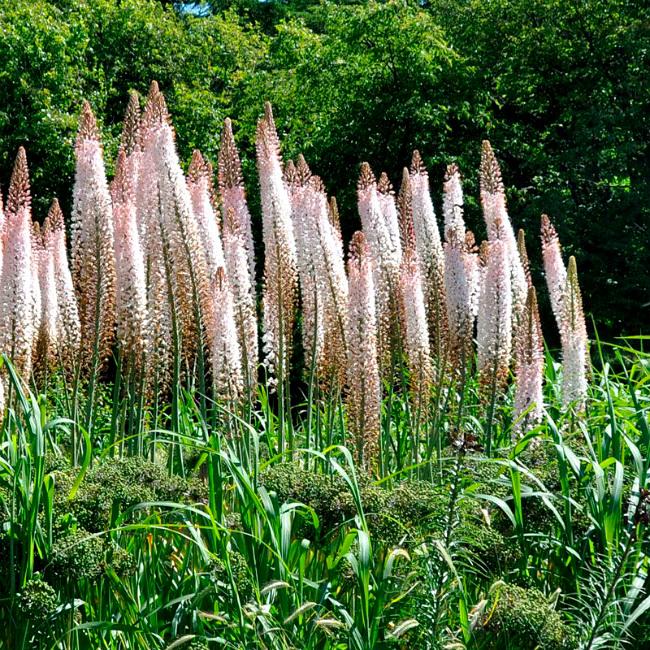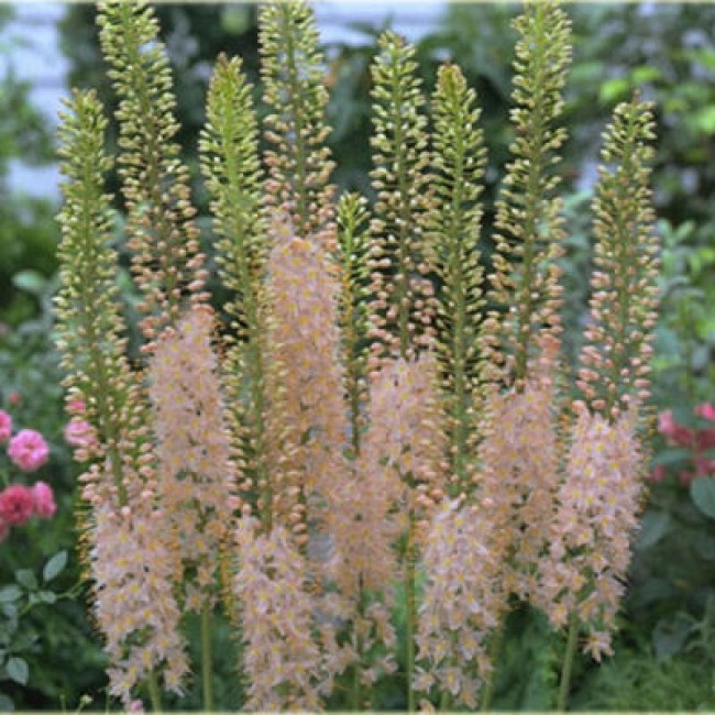 Эремурус гибридный рофорд - это великолепное растение с тонкими, прямыми стеблями, достигающими высоты до 200 см. Его красивые цветки светло-розового оттенка расцветают в июне и июле, придавая саду неповторимое очарование. Листья этого растения зеленеют весной, летом и осенью, создавая яркий контраст с цветами.