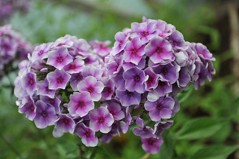 Рассада флокса метельчатого Алексей Ленский порадует любителей изысканных цветов нежной окраской. Края лепестков светлые, а к середине становятся темно-сиреневыми. На этом фоне контрастно выделяются белые тычинки. Цветы-звездочки собраны в полушаровидные плотные соцветия. Срок цветения – средний.