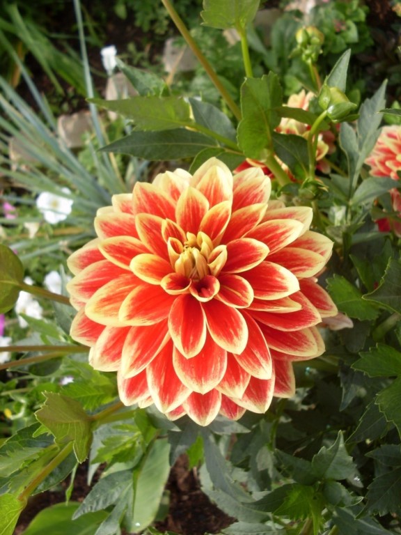 Луковицы георгины декоративной Максим (Maxime) рекомендуются для посадки дизайнерами в парадной зоне участка. Яркая пурпурная окраска лепестков и внушительные размеры цветочных головок придадут клумбе нарядный, праздничный облик. В компанию к растению подсаживают цветы с декоративной листвой или с бутонами белого, кремового оттенка, чтобы те не составляли конкуренцию солисту клумбы.