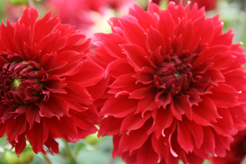 Саженцы и рассада декоративной георгины Ред Фубуки (Dahlia cultorum) представляют голландский сорт конца прошлого века. Круглые кружевные цветы красного цвета имеют размеры от 13 до 18 см в диаметре, но при хорошем уходе вырастают и больше. Сам куст довольно компактен, около 90 см.