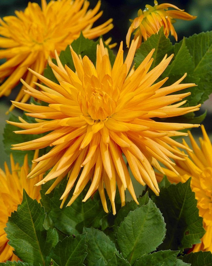 Луковицы георгины махровой Gold Crown (Dáhlia variabilis) хорошо использовать для одиночных посадок на фоне газона, оформления хвойных изгородей или заднего плана групповых посадок и цветников. Культура отличается неприхотливостью. Высаживать ее можно на солнечные или частично затененные участки с легкой почвой. Главное условие выращивания – не допускать переувлажнения. Высота кустарников около 110-140 см. Зацветают георгины Gold Crown красивыми соцветиями, которые состоят из лепестков, завернутых в трубочки. Серединка цветочков желтая, а края нежно-абрикосового оттенка.