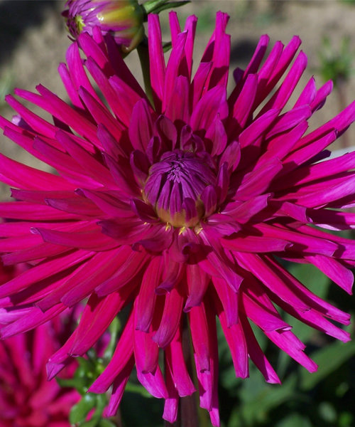 Георгина полукактусовая пёпл джем - это настоящий ювелирный камень сада, который поражает своей красотой и изысканностью. Ее стебель устойчивый и прочный, достигает высоты до 100 см, что делает растение великолепным акцентом в саду. Цветки георгины имеют ярко-розовую окраску и размер до 15 см, что придает им неповторимое очарование. Листья георгины полукактусовой пёпл джем имеют необычную форму, напоминающую полукруглые лепестки.