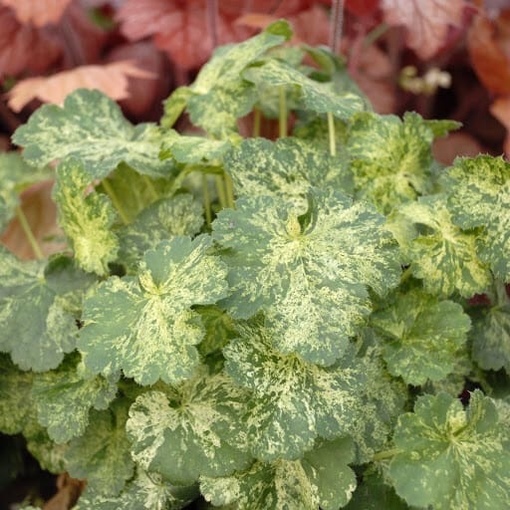 Гейхера гибридная Геркулес - это великолепное растение, которое поразит вас своей красотой и изяществом. Ее стебель прочный и устойчивый, достигая высоты до 45 см, а диаметр растения также составляет 45 см. Листья мраморные, зеленые с кремово-белыми мазками, создают неповторимый вид и придают растению особую изюминку. Гейхера Геркулес предпочитает полутень, поэтому выберите для нее место с рассеянным светом.
