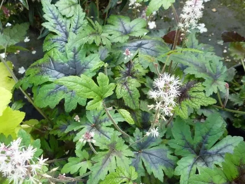 Рассада гейхереллы Арт Нуво (Art Nouveau) отличается эффектным видом, благодаря которому может стать центральной фигурой любой садовой посадки. Центральная часть крупных листьев окрашена темно-бордовым, а края – насыщенно-зеленые. Летом среди листвы появляются стебли с маленькими кремово-белыми цветочками. Сорт очень декоративен, поэтому нашел широкое применение в ландшафтном дизайне.