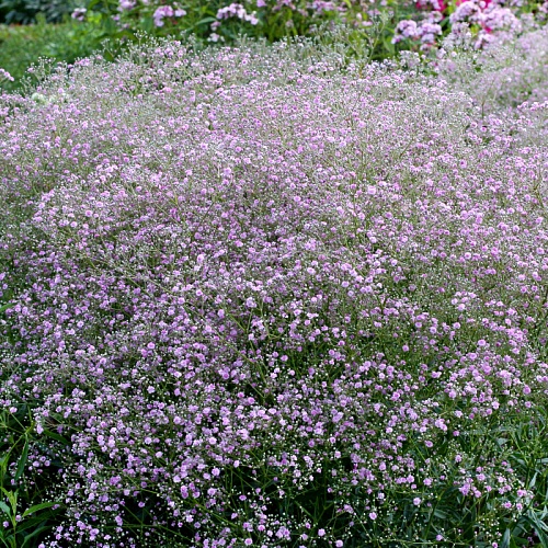 Рассада гипсофилы метельчатой Flamingo (качим, перекати-поле Gypsofila paniculata) хорошо растет на солнце, на умеренно плодородных, рыхлых, дренированных почвах, содержащих известь. Многолетник не выносит переувлажнения, отличается засухоустойчивостью. Побеги гипсофилы метельчатой Flamingo в высоту достигают 120 см. Из-за таких размеров растение используют чаще всего либо для оформления заднего плана смешанных цветников, либо в групповых посадках. Соцветия, состоящие из множества мелких цветочков сиреневого окраса, срезают для создания зимних букетов из сухоцветов.