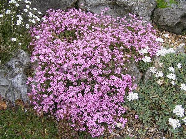 Рассада гипсофилы (качим) ползучей Rosea быстро развиваются, превращаясь в красивые кусты высотой до 15 сантиметров, а диаметром около 30 сантиметров. Этот сорт станет достойным украшением альпинария, каменистой горки или газона. Летом зелень куста скрывается под многочисленными розовыми цветами, которые не увядают до конца лета. Гипсофила (качим) ползучая Rosea одинаково хорошо себя чувствует на ярком солнце и в тени. Почва должна быть дренированной, питательной и с богатым содержанием извести. Растение обладает морозоустойчивостью и не нуждается в зимнем укрытии.