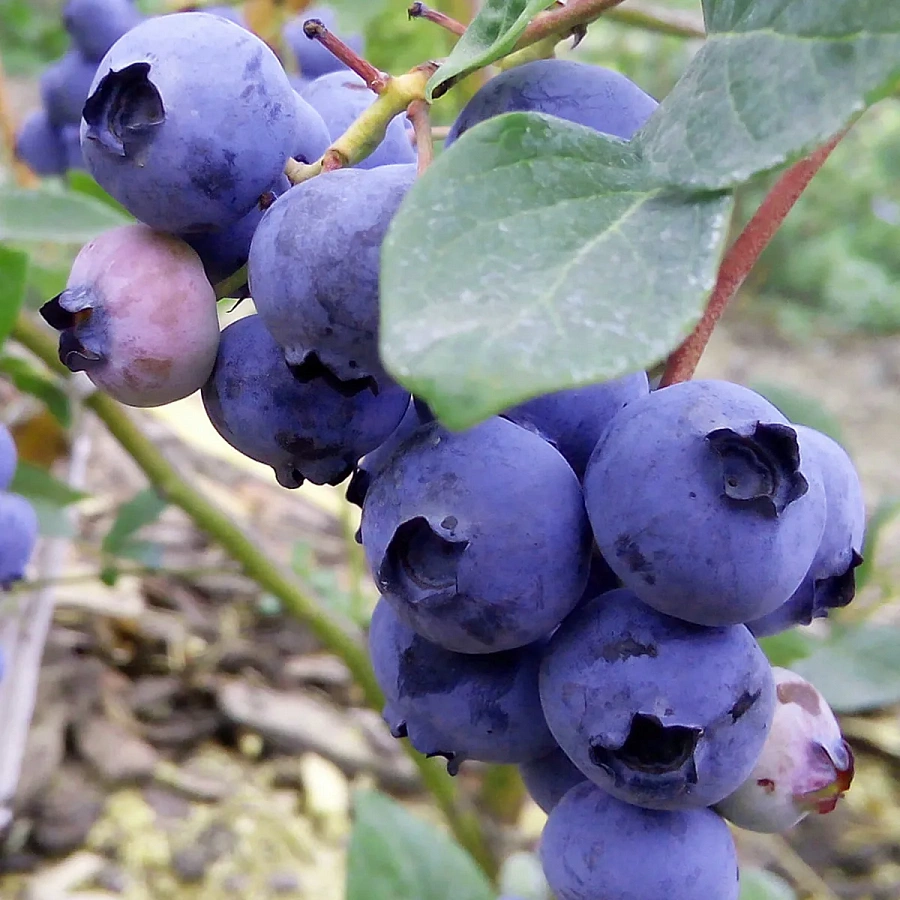 Саженцы голубики садовой Bluecrop (Блюкроп) – крупномер-эталон: самый ценный сорт. Кустарник высокорослый, достигает двух метров. Этому виду голубики нипочём мороз в -34 градуса. С одного куста можно собрать порядка 8 килограммов плодов. Ценность их велика: