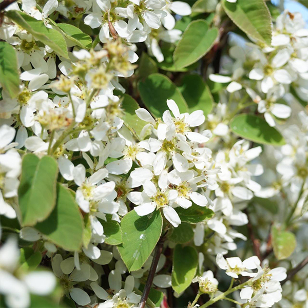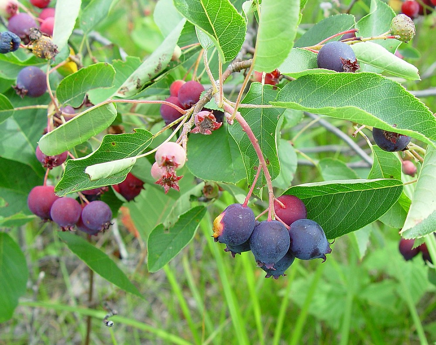 Ирга колосистая – многолетний кустарник с жизненным циклом около 30 лет, вырастает до 2— 5 м в высоту. Растение имеет прямые, тонкие, маловетвистые стволики. Молодые побеги сначала беловато-войлочно-опушенные, позже – они голые, пурпурно-коричневого цвета, блестящие. Кора темно-серого цвета, почти черная. Листья округло-овальные, яйцевидные, очередные, до 2,5 см. Их цвет – сначала серебристо-белый при распускании, потом темно-зеленый, а осенью – светло-желтый или красный. Цветет ирга в мае. Цветки двуполые, белого цвета, собранные в густые верхушечные щитковидные кисти по 5-8 штук. Плоды созревают в августе-сентябре (созревание неодновременное). Они мелкие, округлой формы, яблоковидные, размером с горошину. Окрас плодов сначала зеленый и красный (незрелые плоды), а потом — черный с сизым налетом (зрелые). Мякоть плодов сочная и сладкая, по вкусу напоминает корицу и изюм. Ирга колосистая имеет довольно много преимуществ по сравнению с прочими садовыми кустарниками. К таковым относятся: высокая морозостойкость; нетребовательность к месту произрастания; хорошая урожайность; отличный вкус плодов; универсальность использования ягод; кустарник может использоваться как декоративный, так и ягодный.