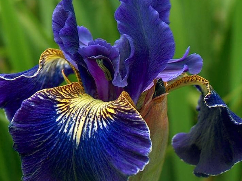 Окраска цветка : Огромный фиолетово-синий цветок с ярким жёлтым кантом по краю фолов.