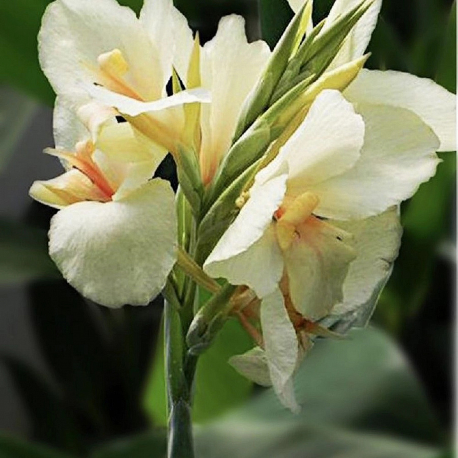 Канна зеленолистная эрмин - это великолепное растение, которое поразит вас своей изящностью и красотой. Ее стебли достигают высоты от 60 до 90 см, а цветки молочного оттенка радуют глаз в июле и августе. Листья зеленого цвета создают уют и гармонию в любом саду. Это растение предпочитает солнечные места и дренированные богатые почвы. Рекомендуется высаживать его на газоны, в групповые или одиночные посадки.