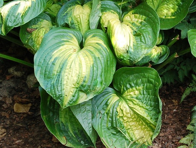 Листья имеют широкие сине-зеленые края с зеленовато-желтыми центрами, которые летом становятся желтыми.Предпочитает легкий, рыхлый, плодородный и умеренно влажный почвы .Хосты лучше всего растут на слабо-кислых почвах, но может расти и на щелочных грунтах. Им нужна тнь или полу тень. Рекомендуется высаживать данный сорт одиночно или группами в рокарии, цветнике, газоне, около водоема или в иных ландшафтных композициях.