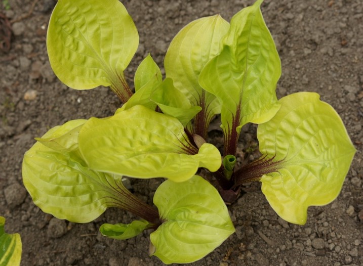 Хосты гибридной Lemon Snap (Лемон Снэп) Эта незаурядная, миниатюрна красавица образует небольшой привлекательный холмик из чашевидных и гофрированных ярко-желтых листьев, которые держатся на вертикальных рубиновых стебельках, с красной сердцевиной в центре каждого листа. Бледно-фиолетовые цветки распускаются с конца июля по август на очень темно-фиолетовых черешках высотой до 60 см, за которыми следуют жизнеспособные семена. Характерные особенности растения: