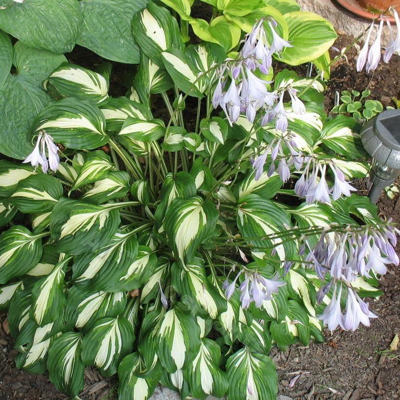 Рассада волнистой хосты сорта Унивитата (Univittata) обладает высокими декоративными свойствами, благодаря необычным листьям и красивому цветению. Листва привлекает внимание не только двухцветной окраской, но и изогнутой формой. Многолетник используется для украшения водоемов, клумб и бордюров.