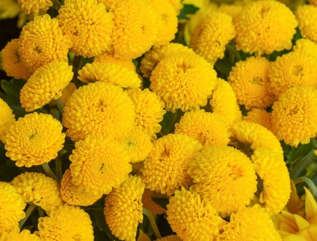 Семена хризантемы девичьей сорта Голден Бол (Golden ball) подходят для украшения клумб, оформления рабаток и выращивания цветов для составления букетов. Во время цветения на компактном растении появляются пышные желтые соцветия.