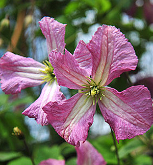 Саженцы клематиса гибридного Оберек (Oberek) не требуют много времени на уход и способны адаптироваться к любым условиям выращивания. Цветение длится с мая по сентябрь, с перерывом в июле. Цветки диаметром 5-6 см, розовые со светлым основанием и волнистым краем. Клематис гибридный Оберек (Oberek) применяют для благоустройства зон отдыха, оформления веранд, террас и других объектов. С помощью листовых черешков, цепляется за любую опору и способен подниматься на высоту до 400 см. Пригоден как для одиночных посадок, так и групповых, в сочетании с карликовыми деревьями, хвойниками и кустарниками.