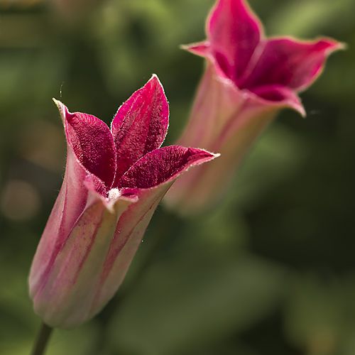 Окраска цветка : темно-розовая снаружи, багровая внутри, при полном роспуске видны жёлтые тычинки