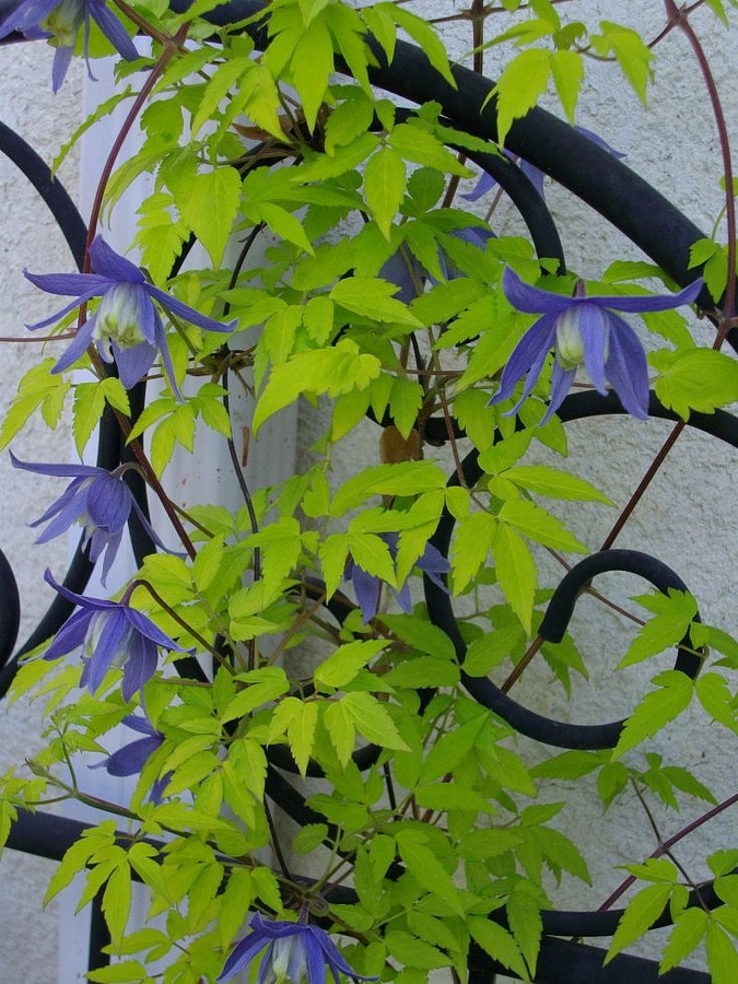 Саженцы клематиса гибридного Столвик Голд (Stolwijk Gold) высаживают на солнечные или полузатененные участки с влажной, плодородной почвой. Взрослое растение достигает в высоту 200-300 см, при помощи листовых черешков цепляется за поверхность, расположенных рядом объектов. При отсутствии опоры побеги стелются по поверхности почвы. Клематис гибридный Столвик Голд (Stolwijk Gold) не теряет декоративных качеств в течение всего сезона, благодаря золотисто-желтой листве, которая контрастно сочетается с фиолетово-голубыми цветками и светлыми пушистыми соплодиями. Цветки в диаметре достигают 5-6 см, широко раскрытые по форме напоминают колокольчик. Цветет обильно, начиная с конца апреля и на протяжении мая. В течение лета цветение повторяется.