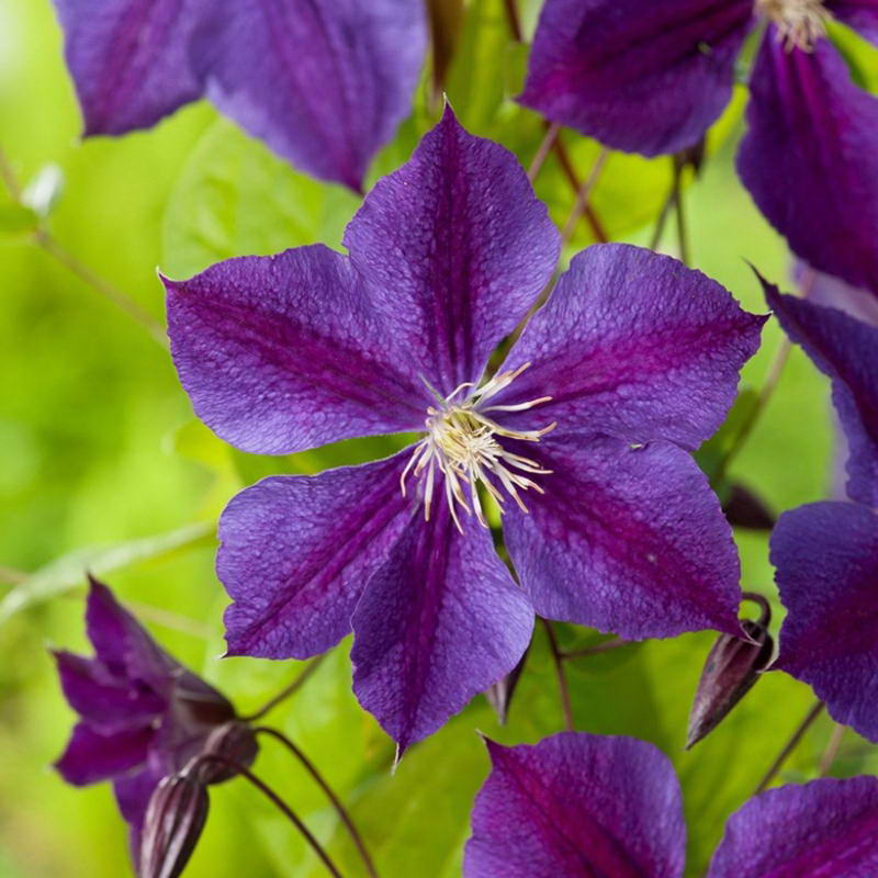 Клематис крупноцветковый Star of India - это волшебное растение, которое поразит вас своей красотой и изяществом. Его стебли достигают высоты до 300 см, а цветки фиолетово-пурпурные, размером до 15 см, будут радовать глаз в течение нескольких месяцев весной и летом. Листья клематиса темно-зеленые, сохраняя свою красоту и осенью. Это растение предпочитает солнечные места и глинистые почвы, идеально подходит для живой изгороди.