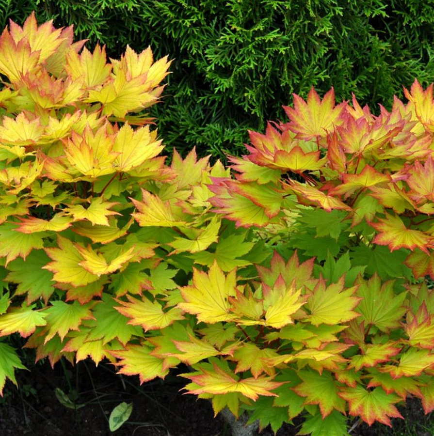 Саженцы клена дальневидного Katsura высаживают на хорошо освещенное и защищенное от ветров место. Почвы подойдут любые влажные, хорошо дренированные. Это довольно морозостойкий сорт, который выдерживает температуру до -25 градусов. Размеры дерева компактные. Максимальная высота достигает до 1,5-3 метров. Маленькие, пальчатые листья до 2,5 см длиной. Они появляются весной желто-зелеными с оранжево-тонированными краями. Летом листва становится ярко-зеленого цвета, а их кайма — розовой. Осенью листочки приобретают светлые оттенки оранжевого и желтого тонов. Сорт нуждается в регулярном поливе.