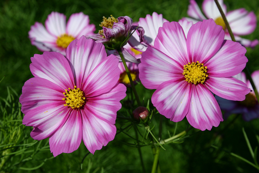 Семена космеи (Космос) "Пикоти" высевают на рассаду в марте — апреле или в открытый грунт в мае, выбирая для посадки солнечные участки. Цветет растение с середины июня до наступления заморозков. Цветочки имеют очень интересную расцветку: лепестки белые с легким красным оттенком, обрамленные карминно-красной рамочкой. Серединка желтая. Диаметр цветов до 10 см. Высота взрослого растения достигает до 80 см. Культура светолюбива, холодостойка, относительно засухоустойчива, в уходе неприхотлива. Хорошо смотрится в одиночных и смешанных посадках.