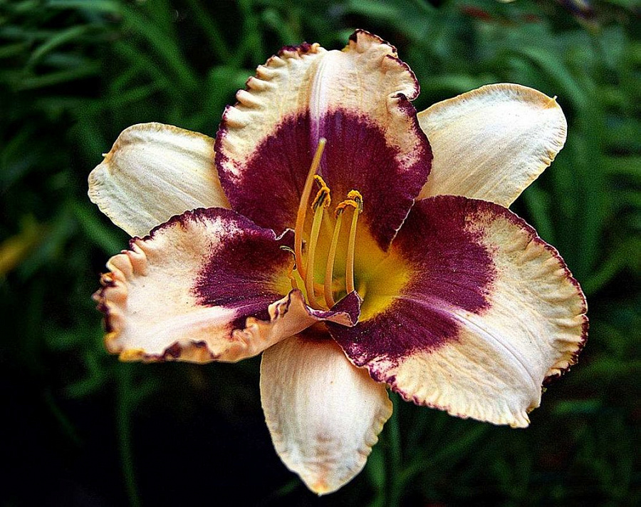 Лилейник гибридный Александр Хей (Alexander Hay) привлекает внимание необыкновенной окраской. Пурпурные лепестки цветов с желтым горлом и кремовыми вкраплениями изящно смотрятся на высоком цветоносе. Данное растение широко используют для оформления миксбордеров. Высота взрослого куста достигает 65 см. Размер цветка 13 см. Цветет лилейник в июле, повторно осенью. Выращивать лилейник гибридный Alexander Hay может не только опытный, но и начинающий садовод.