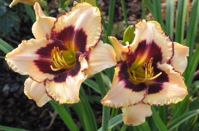 Рассада лилейника гибридного Canadian border patrol позволит вырастить один из наиболее роскошных сортов. На кремовой поверхности лепестков контрастно выделяются широкие пурпурные штрихи и окантовка. Этот сорт можно использовать для наполнения клумб, украшения мест отдыха, создания бордюров, для срезки и последующего составления букетов. Рассада лилейника гибридного Canadian border patrol начинает цвести в июле. Каждый бутон раскрывается на сутки, после чего увядает, но благодаря большому количеству соцветий создается впечатление непрерывного цветения. Сорт пригоден для озеленения городских парков.