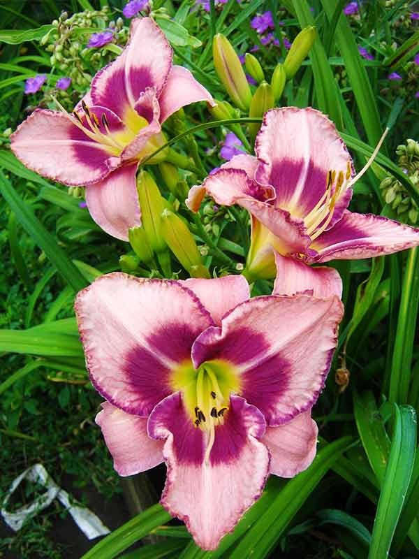 Рассада многолетнего лилейника Эйдж Эхед (Edge Ahead) характеризуется неприхотливостью и крупными цветками до 14 см в диаметре. Лилейник может вырастать до 70 см в высоту. Его листья подчеркивают красоту цветков – они изогнутые насыщенного зеленого цвета. На их фоне лавандовые цветки смотрятся очень эффектно и украшают любой ландшафт. Внутренние лепестки цветка гофрированные. Зацветает Эйдж Эхед в начале июля и цвете весь месяц, особенно выгодно выгляди в этот период растение на солнечном участке. Растение часто используют в срезке, при озеленении вблизи кустарников, для оформления газона и смешанных посадок, недалеко от воды.