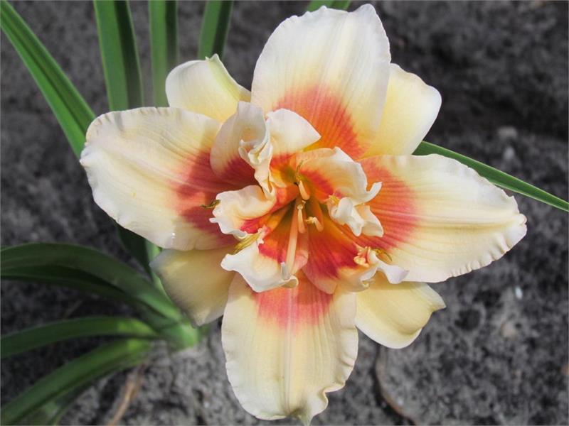 • Окраска цветка : Кремово-розовый с кирпично-красным глазом