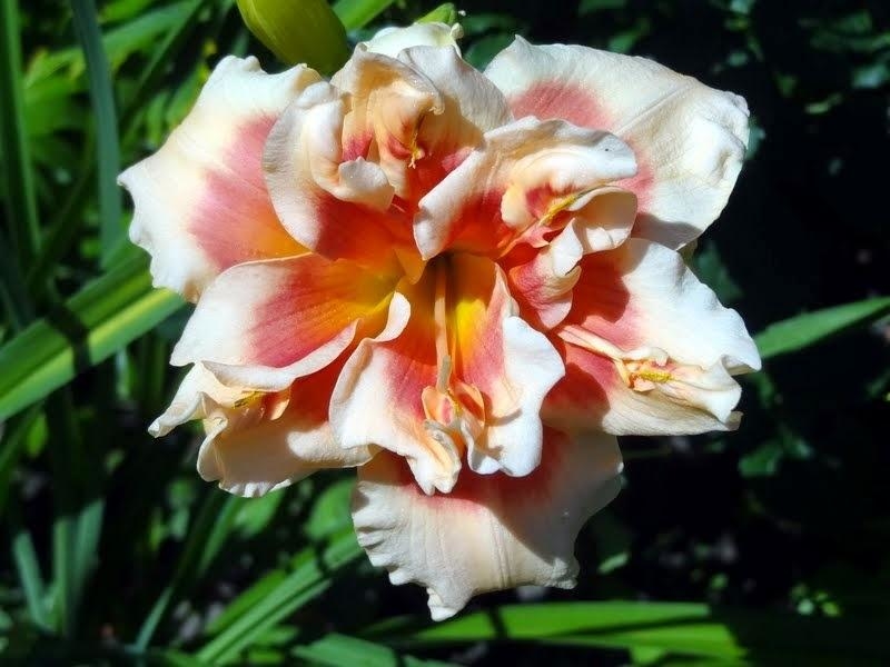 Рассада лилейника Фоти Секонд Стрит (Forty Second Street) прекрасно дополнит клумбу с другими цветами или может выступить в роли монокомпонента цветника. Этот сорт относится к вечнозеленым растениям, то есть его листва постоянно обновляется, даже зимой. Семена имеют высокий уровень стойкости к различным вредителям. Цветущий лилейник Фоти Секонд Стрит представляет собой завораживающее зрелище. Лепестки имеют нежно-кремовый оттенок с розовой серединкой и зеленым горлышком. Вокруг горла можно наблюдать яркое желтое кольцо. Края внутренних лепестков сильно гофрированные, что придает бутону полноту.