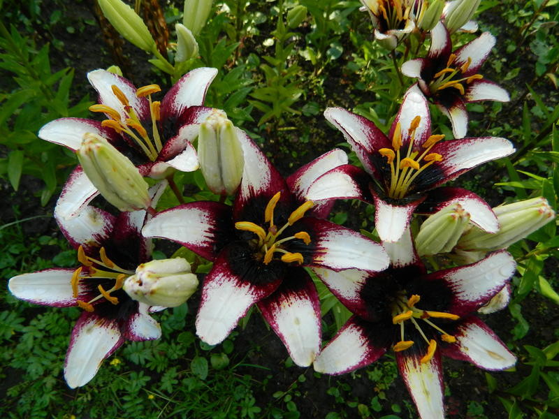 Луковицы Лилии азиатской Танго Блэк Ай (Lilium asiatic Tango Black Eye) при несложном уходе превращаются в высокорослое (до 100 см в высоту) растение, поражающее необычной раскраской. Название гибрида Black Eye говорит само за себя и переводится как «черный глаз». Цветки размером около 15 см в диаметре отличаются белыми лепестками с пурпурно-лиловой окантовкой и черным «глазом» в центре. Этот невероятный контраст не потеряется ни в одном саду и будет привлекать к себе внимание. Сорт с такой экзотической окраской станет отличным дополнением к коллекции лилий как начинающего цветовода, так и профессионала с многолетним опытом.