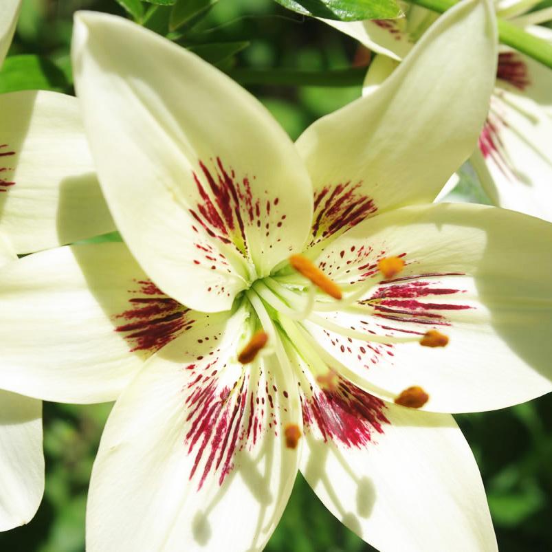 Луковицы лилии Centerfold рекомендуют высаживать в апреле – мае либо в сентябре. Место выбирают солнечное, с легким, рыхлым грунтом. Сорт отличается нежным ароматом и светлой окраской. С июня до августа на лилии Centerfold красуются белые крупные цветы, в серединке которых присутствуют фиолетовые штрихи. Диаметр раскрытых бутонов около 15 см. Растения используют для одиночных и групповых посадок, создания ароматных акцентов в смешанных цветниках, оформления различных зон сада.
