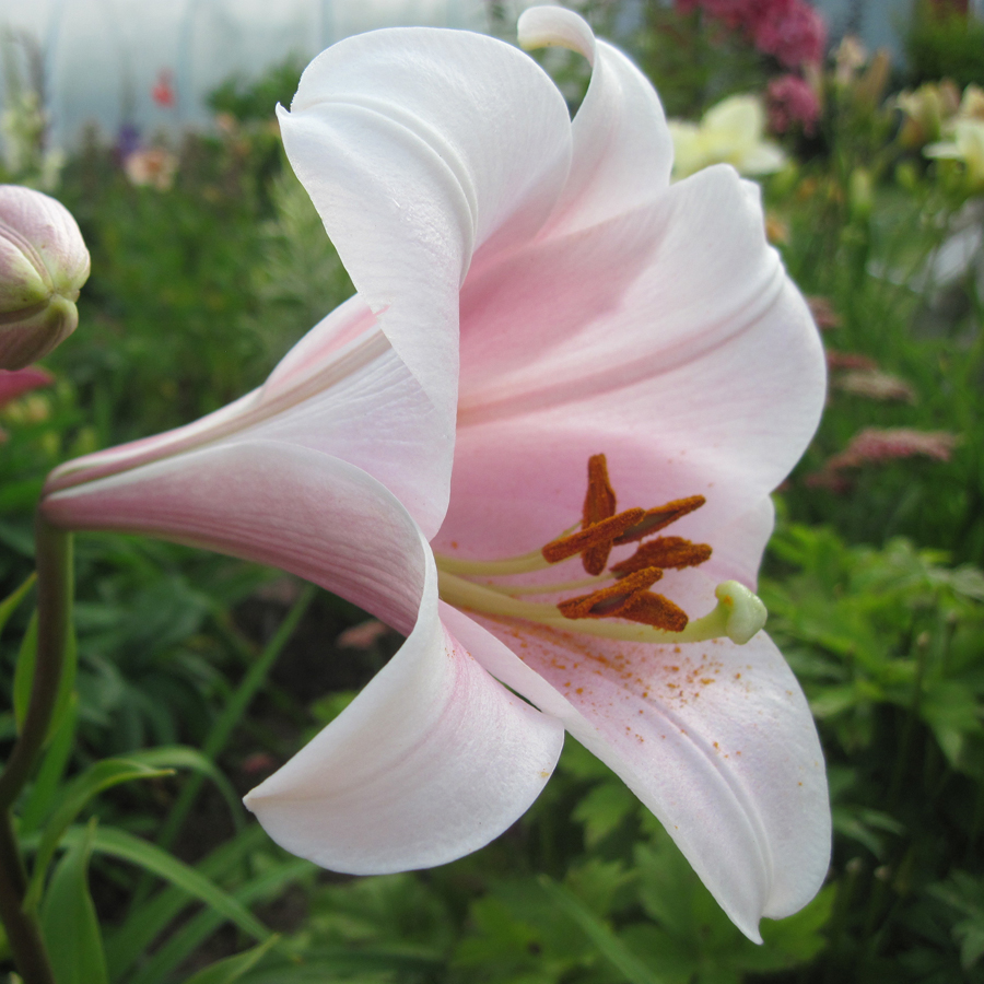 Саженцы и рассада лилии лонгифлорум Дольчетто (Lilium) формируются в очень крупное растение. Высота стебля иногда превышает стандартные 120 см, цветы в диаметре достигают 25 см. Эти характеристики делают его незаменимым при посадках за ограждениями в виде штакетника. В срезе такие габариты выглядят очень эффектно, особенно с цветами розово-перламутрового оттенка, который выглядит достойно и элегантно. Аромат лилейный, сладковатый.