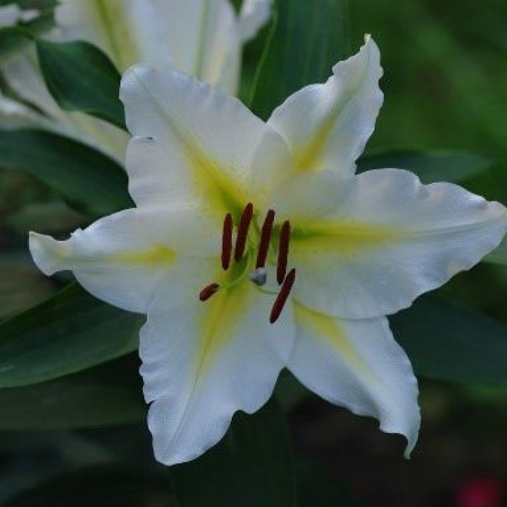 Саженцы и рассада многолетней Лилии восточной Венесуэла (Lilium Oriental Hybrid Venezuela) вырастают до 110 см в высоту. Максимально комфортно чувствуют себя на плодородных слабокислых торфяных почвах с хорошим дренажем, на солнечных или полутеневых местах. Не любят застоя воды и воздуха. Цветки с приятным сильным запахом, белоснежные, с широкой ярко-желтой полосой вдоль центрального сгиба лепестка, ближе к тычинкам полоса расширяется. Лепестки волнистые, слегка загнутые от центра. Начинает цвести в конце июня, июле. На зиму требует укрытия при отсутствии снега, мульчирования почвы перед зимовкой.