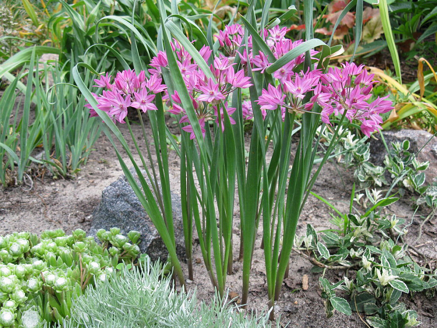 Луковицы лука горолюбивого (Островского) (Allium Oreophilum) оценят любители декоративных многолетников. Взрослый кустик красиво оформлен — на фоне зеленой листвы формируется мясистый, плотный цветоно, с мелкими розовыми цветами, заключенными в зонтичные соцветия. Диаметр одного шара — 10 сантиметров. Распускается в июне, цветет до конца июля. Высота и диаметр взрослого растения достигают 30 сантиметров. Травяное растение получило наибольшее распространение в одиночных посадках. С помощью растения формируют аллярии — клумбы из декоративных луков.