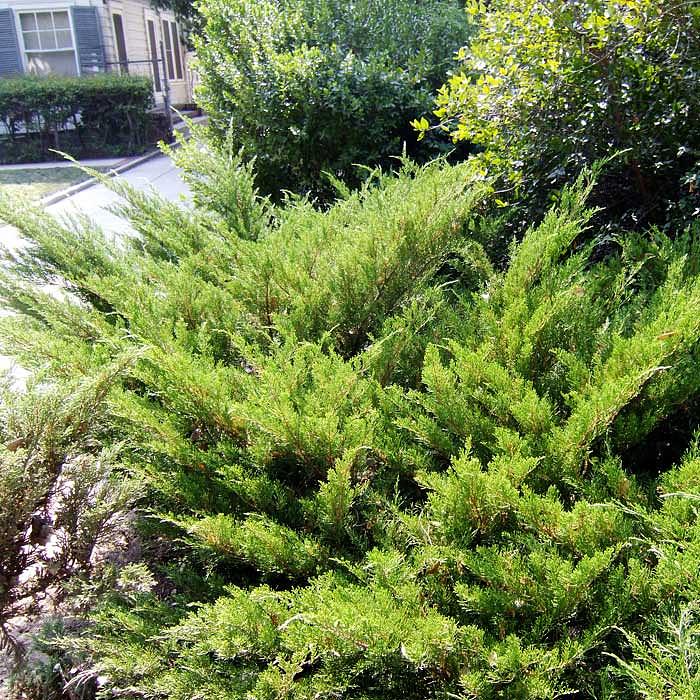 Саженцы Можжевельника казацкого Мас (Mas) – декоративное растение, относительно не высокое. Пышная крона имеет раскидистые ветки. Цвет зависит от сезона, летом можжевельник зелёный с голубым подтоном, а зимой иголки становится пурпурными. Эффектно смотрится в любое время. Растение медленно растёт, в год примерно на 10 сантиметров, максимальная высота 2 метра, а ширина колеблется от 3 до 5 метров. Условия и уход напрямую влияют на рост. Молодые побеги наклоняются к земле, а остальные ветки подняты вверх. Хорошо себя чувствует в морозы, не любит повышенную солёность и влагу. Предпочтительно высаживать на солнечных площадках.