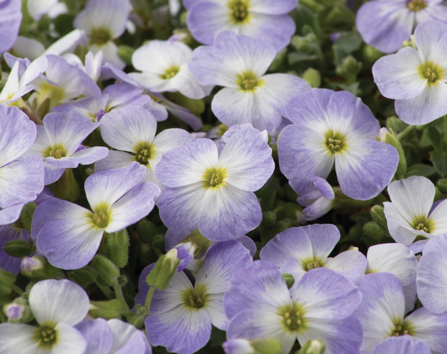 Семена обриеты изящной Blue Blush Bicolor принадлежат к одному из самых красивых сортов. В конце весны — начале лета тонкие, распростертые стебли этого растения покрываются небольшими цветочками двухцветной окраски. От края лепестков к середине цвет перетекает от сиренево-голубого к белому. Сердцевинка желтая. Из-за обилия цветочков листья практически не видны. Высевают семена бриеты изящной Blue Blush Bicolor в легкую, хорошо дренированную известковую почву. Места для выращивания кустика подходят солнечные или частично затененные. Высота растения обычно не превышает 15 см.