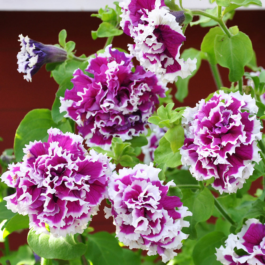 Петуния махровая Pirouette Purple - это волшебное растение, которое поразит вас своей красотой и изысканностью. Ее стебель прочный и устойчивый, достигает высоты до 35 см, а диаметр цветка может достигать 10 см. Листья петунии махровой Pirouette Purple имеют ярко-зеленый оттенок, что создает прекрасный контраст с фиолетово-белыми цветками.