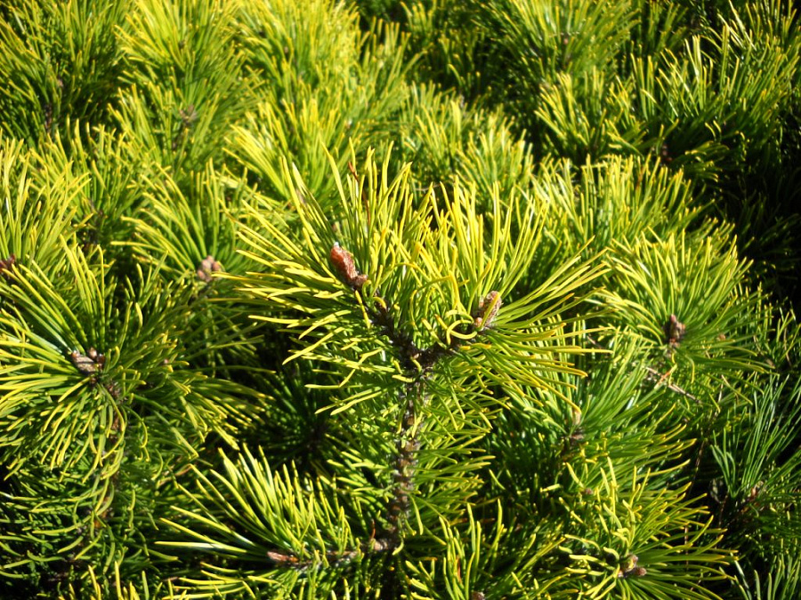 Саженцы Сосны горной Хостин Голд (Hostyn Gold, Pinus mugo) – карликового хвойный кустарник с подушковидной кроной и желтой хвоей в зимний период, летом хвоя зеленого цвета. К 10-ти годам высота 30-40 см и ширина 60-70 см. Годовой прирост 3-5 см. Крона асимметричная. С возрастом начинает разрастаться в стороны. Хвоя блестящая, длиной до 3-5 см., ярко-зеленая с весны до середины осени, затем желтеет. Зимостойка и светолюбива. Хорошо смотрится в сочетании с темно-зеленой листовой, на фоне других хвойных растений в зимний период.